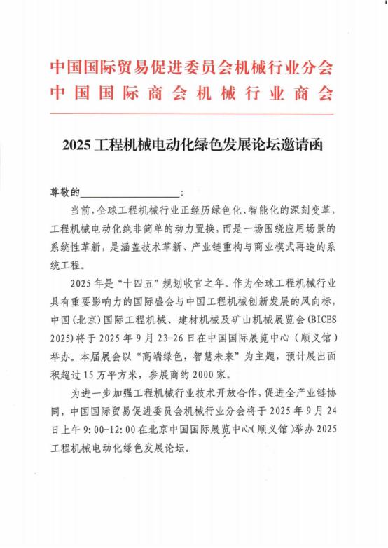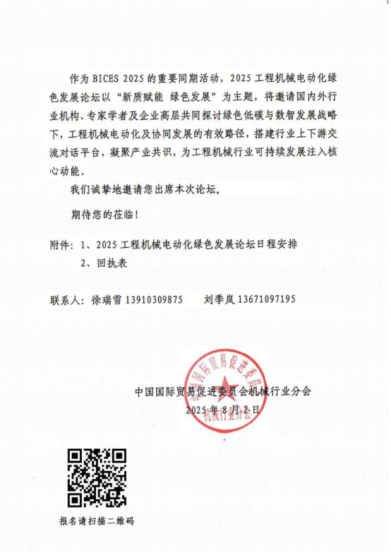 BICES 2025同期程機械電動化綠色發展論壇報名開啟