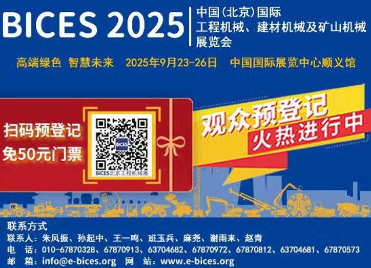 2025年9月23—26日,中國(北京)國際工程機(jī)械、建材機(jī)械及礦山機(jī)械展覽會(BICES 2025)將在中國國際展覽中心順義館舉辦。預(yù)計現(xiàn)場將匯聚超15萬人次來自國內(nèi)和全球工程機(jī)械、建材機(jī)械以及礦山、港口、交通、市政、水利、電力、化工等領(lǐng)域的用戶和觀眾,與展商朋友一起共襄盛舉。