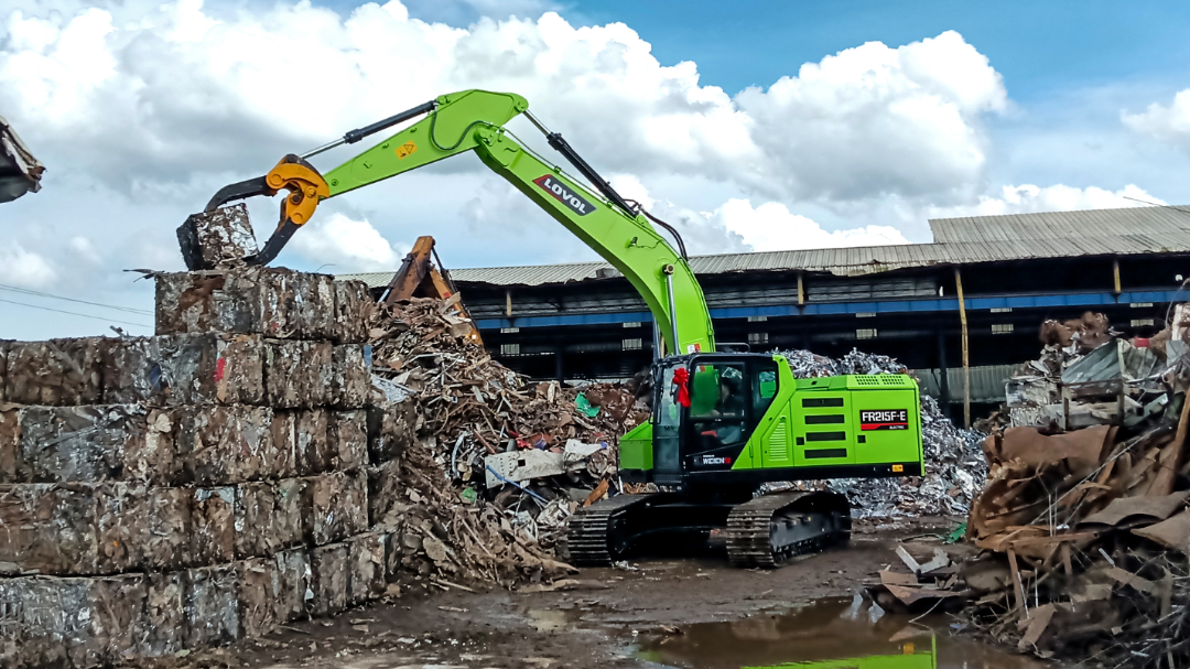 在循環經濟與“雙碳”戰略的雙重驅動下,雷沃純電挖掘機FR215F-E不僅實現了作業過程的零排放,其澎湃的動力輸出更在抓取、拆解等作業場景下,展現出超越傳統設備的爆發力。