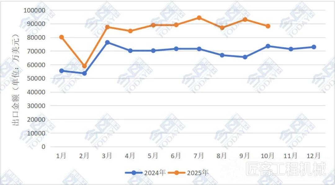 2025年1—10月中國工程機(jī)械產(chǎn)品進(jìn)出口情況分析