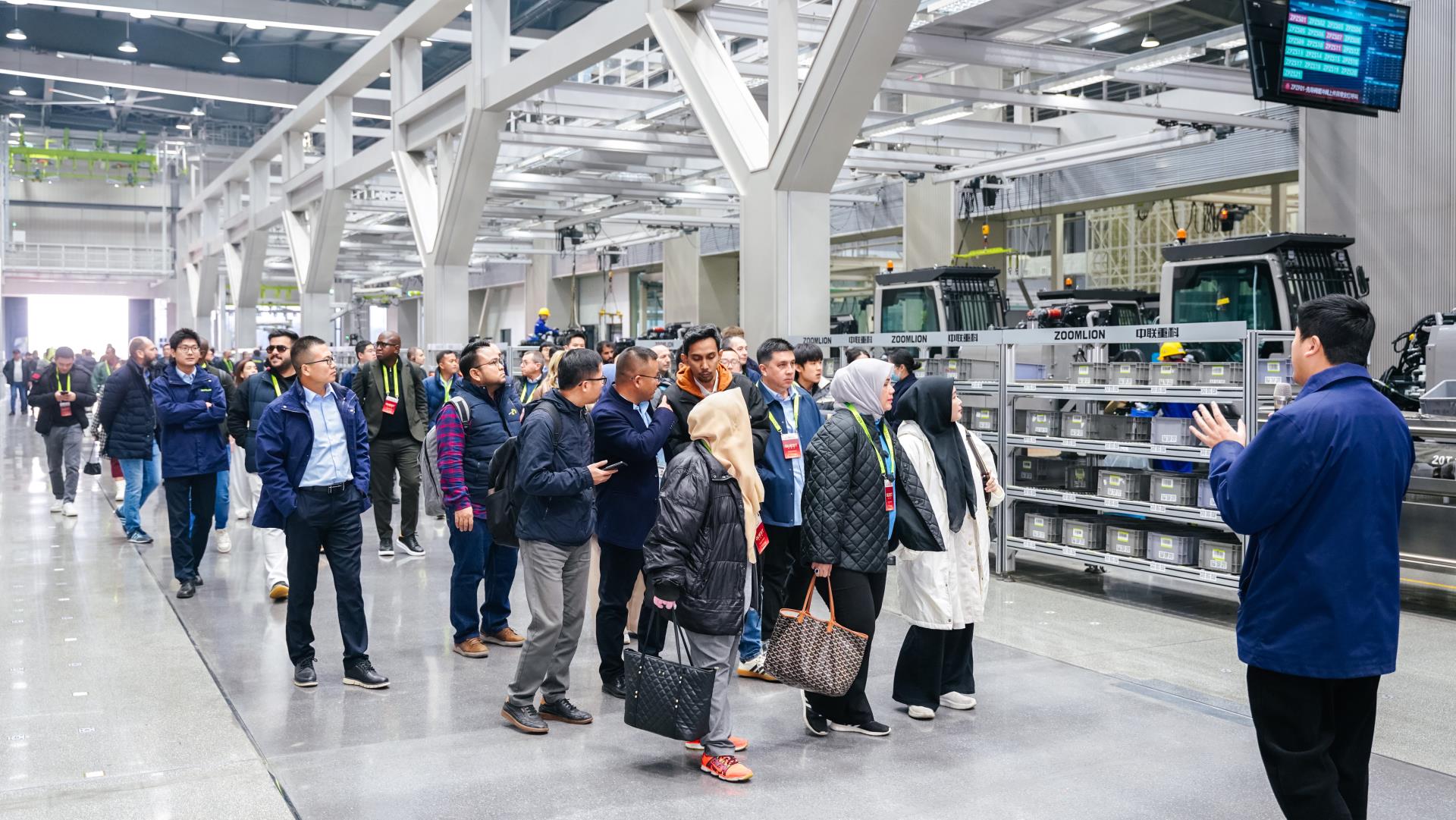 期間,海外客戶參觀了中聯智慧產業城土方機械園、高空機械園、起重機械園和混凝土泵送機械園等四大全球領先的智造園區,觀摩了緊湊型設備聯合施工、綠色無人裝備演示。近距離親身感受,讓活動嘉賓對中聯重科引領行業的智造成果和智能化、綠色化水平贊嘆不已。