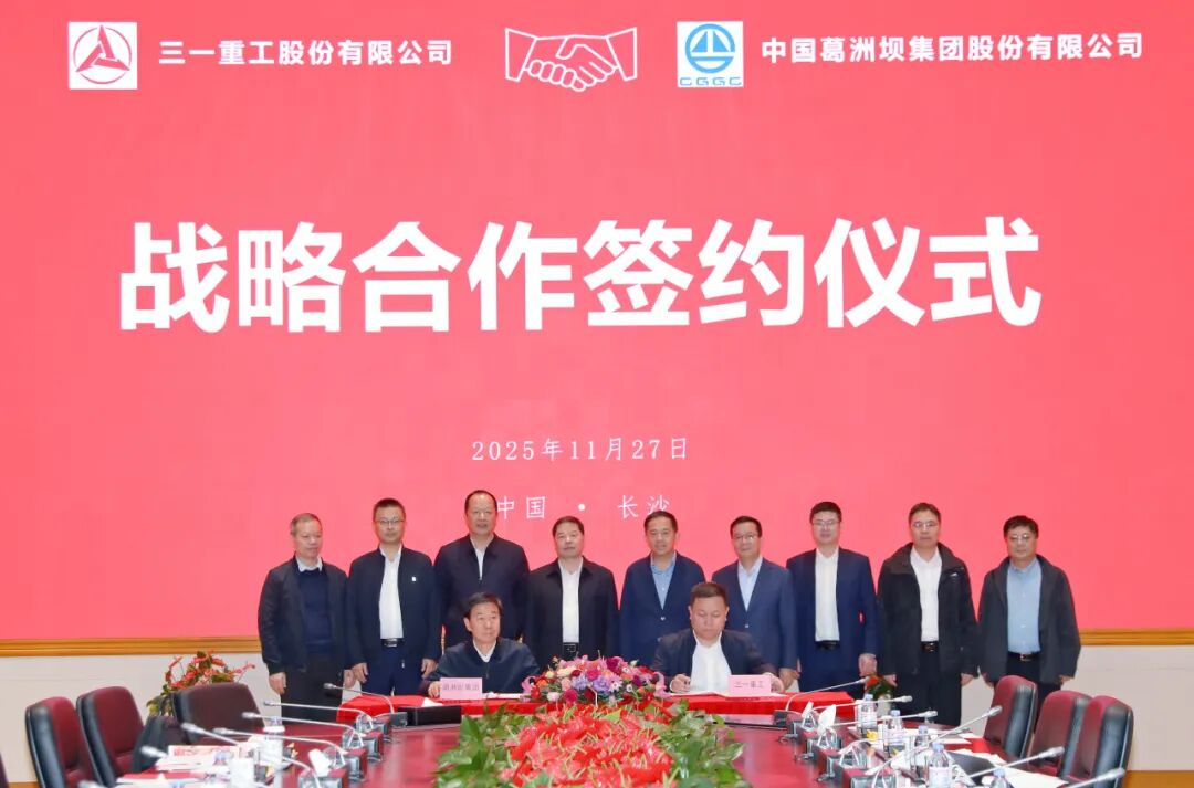 11月27日,三一重工與中國能建葛洲壩集團在長沙簽署戰略合作協議。雙方將建立戰略合作關系,在國內外工程市場開發、高端工程裝備研發、智能建造技術攻關、設備采購與租賃等方面,充分發揮各自優勢,共創合作共贏良好局面。